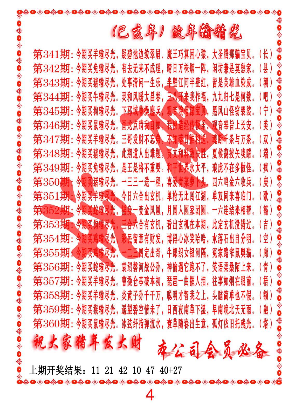 345期:参赛贴【彩王通天报】⑥肖中特🍴开开心心坐等收钱